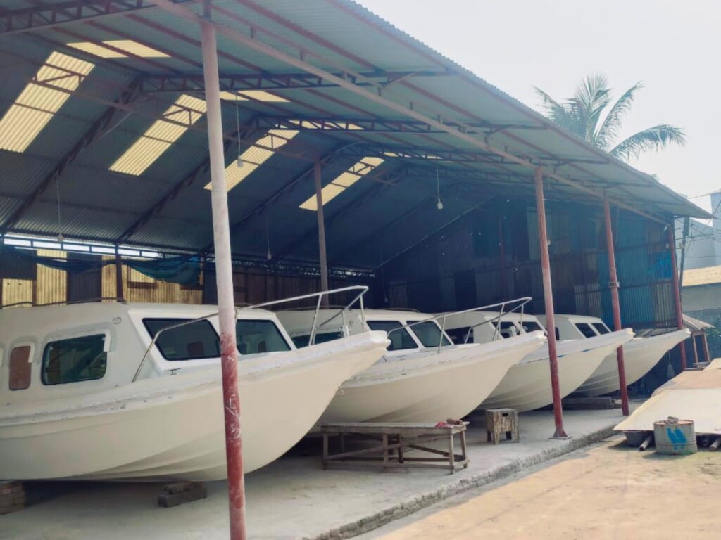 B.F. International’s manufacturing facility, Marine Fibreglass, is located in Lalpur, Fatullah, Narayanganj, just 12 km from Dhaka city. The 15,000 square feet self-owned, enclosed facility is designed for the simultaneous production of fiberglass boats in various sizes, under all weather conditions.